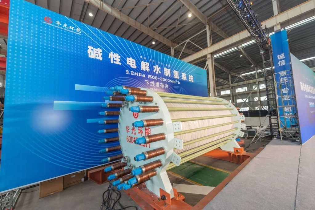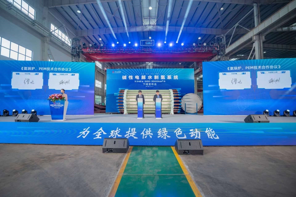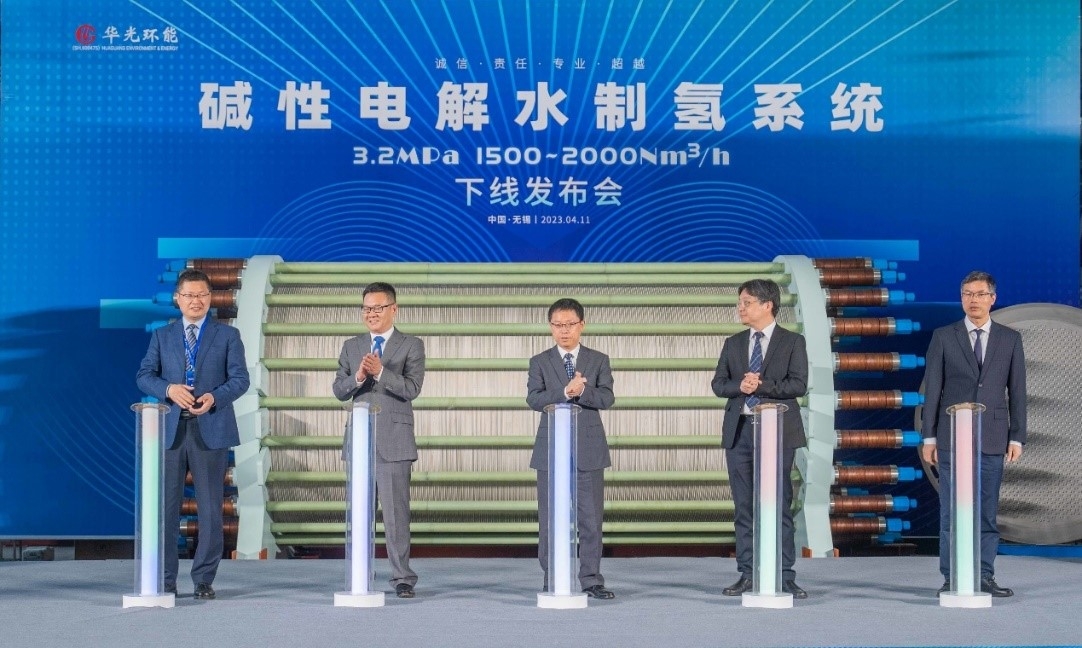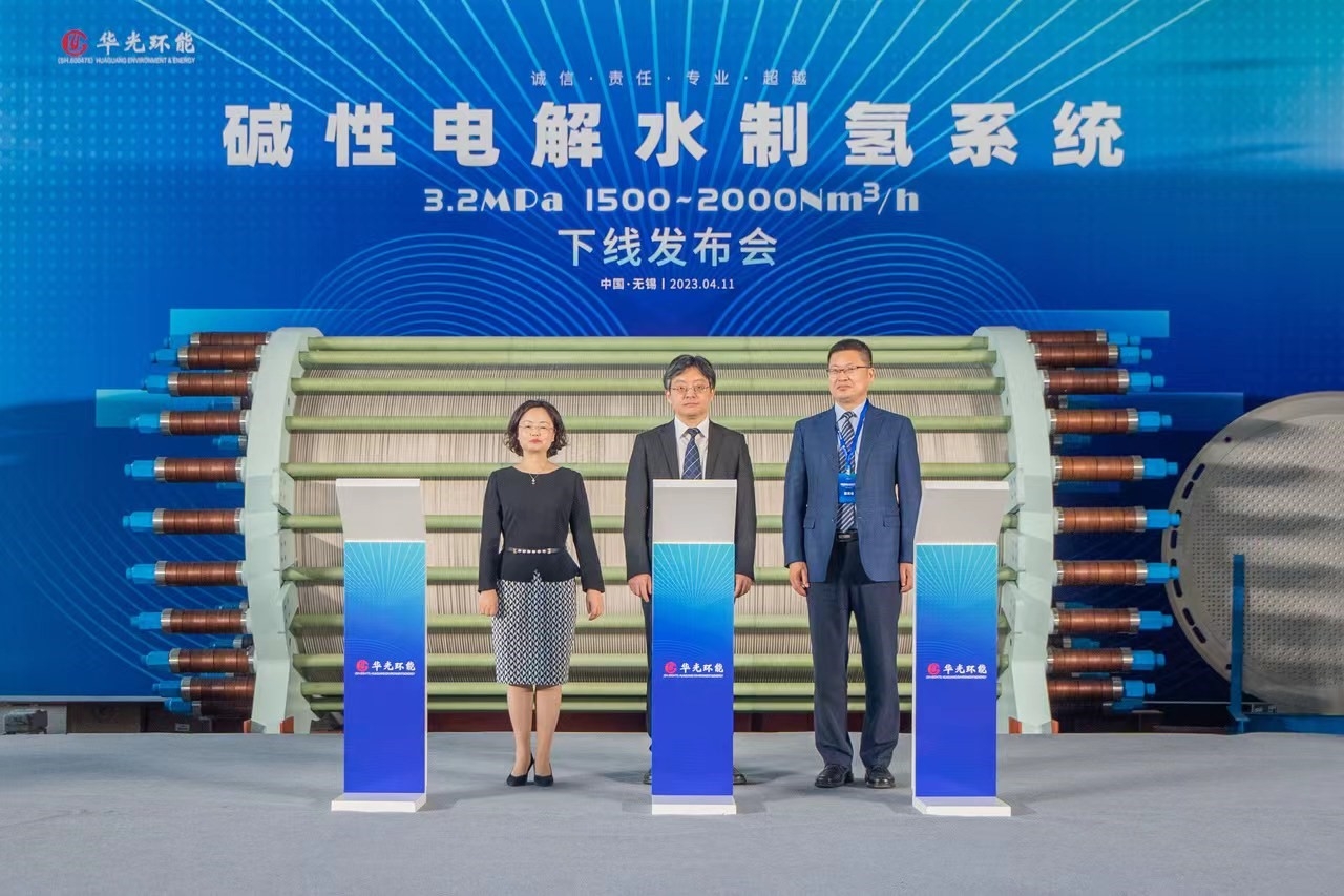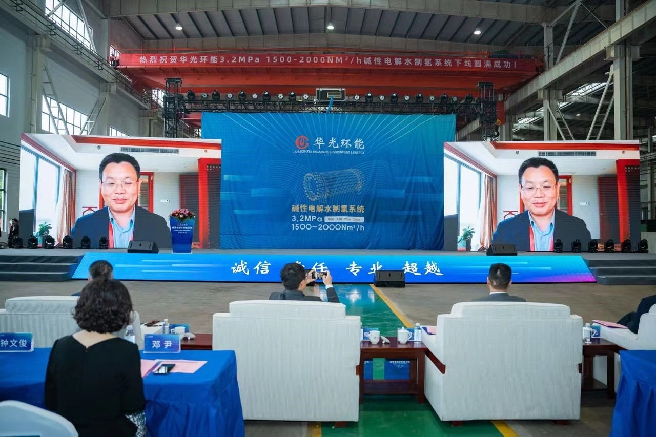 近日,由大连理工大学梁长海教授团队研发设计,联合无锡华光环保能源集团股份有限公司实现产业化的国内首创最大单体电解水制氢设备——3.2MPa,1500-2000Nm³/h碱性电解水制氢系统在江苏无锡隆重发布。中能建氢能源有限公司、中石化广州、上海工程有限公司、成都市新材料产业功能区等相关政府部门、企业合作单位、机构、新闻媒体共同见证了华光环能电解水制氢系统诞生,该成果填补了国内千方级高压力电解槽空白。