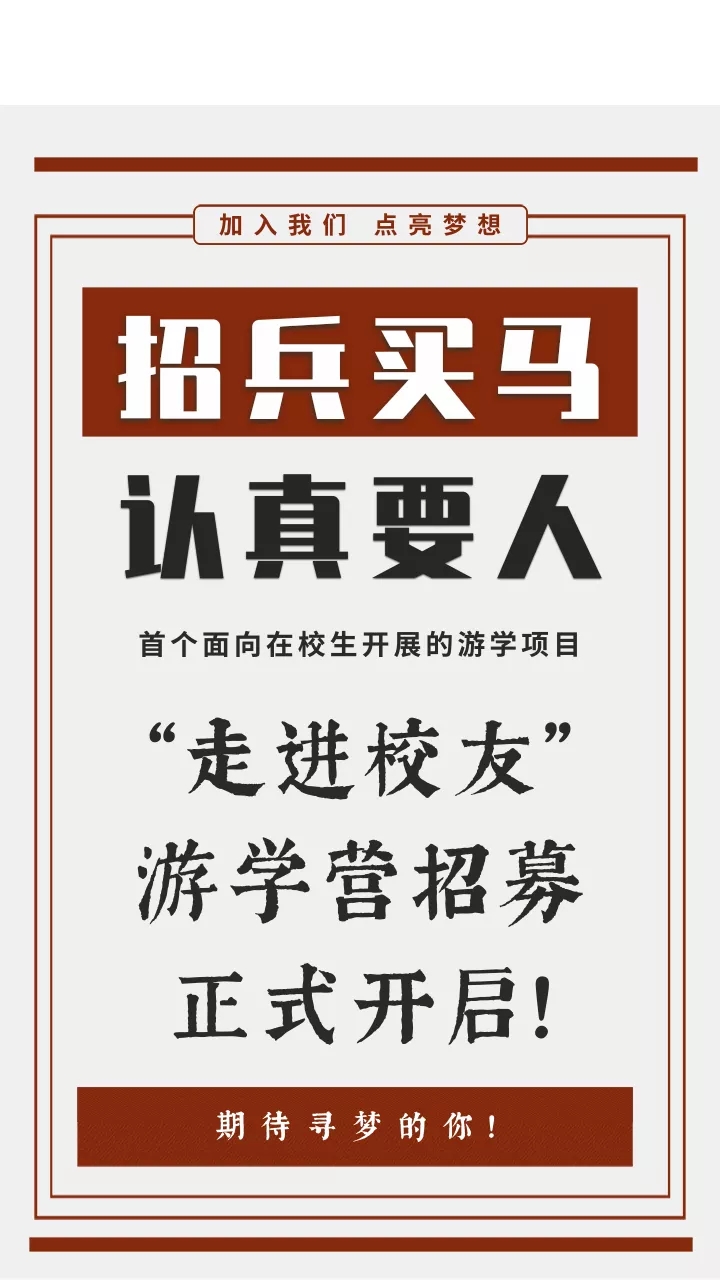 首期“走进校友”游学营分为两个阶段:日常拓展营和集中走访营。(若防疫要求不能走访时,将改为线上交流)