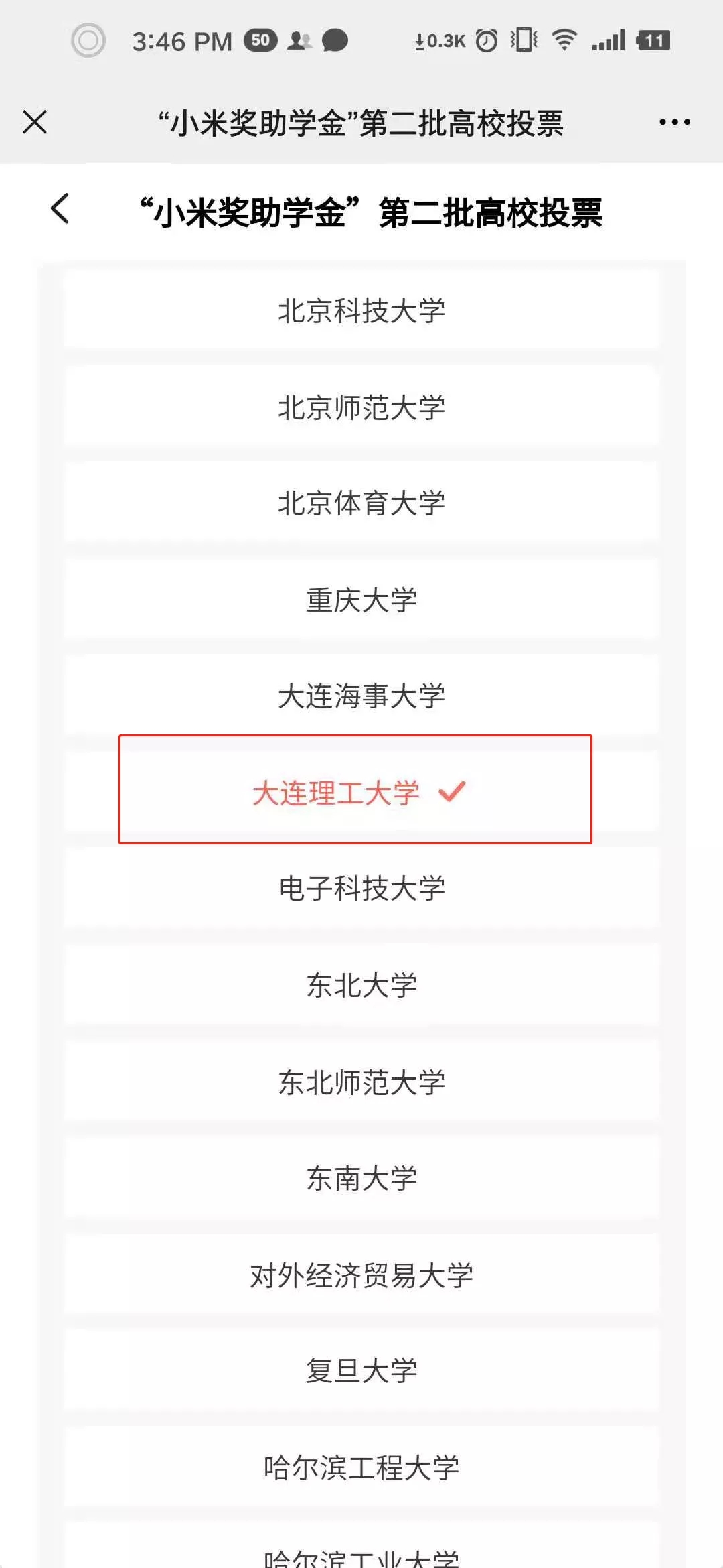 你的关键一票,将为大工再添一项“小米奖助学金”!一起为大工投票吧!