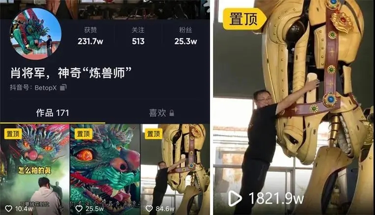 他的抖音拥有超25万粉丝,短视频传播超过两亿次,是大型装置艺术领域的“头部达人”。