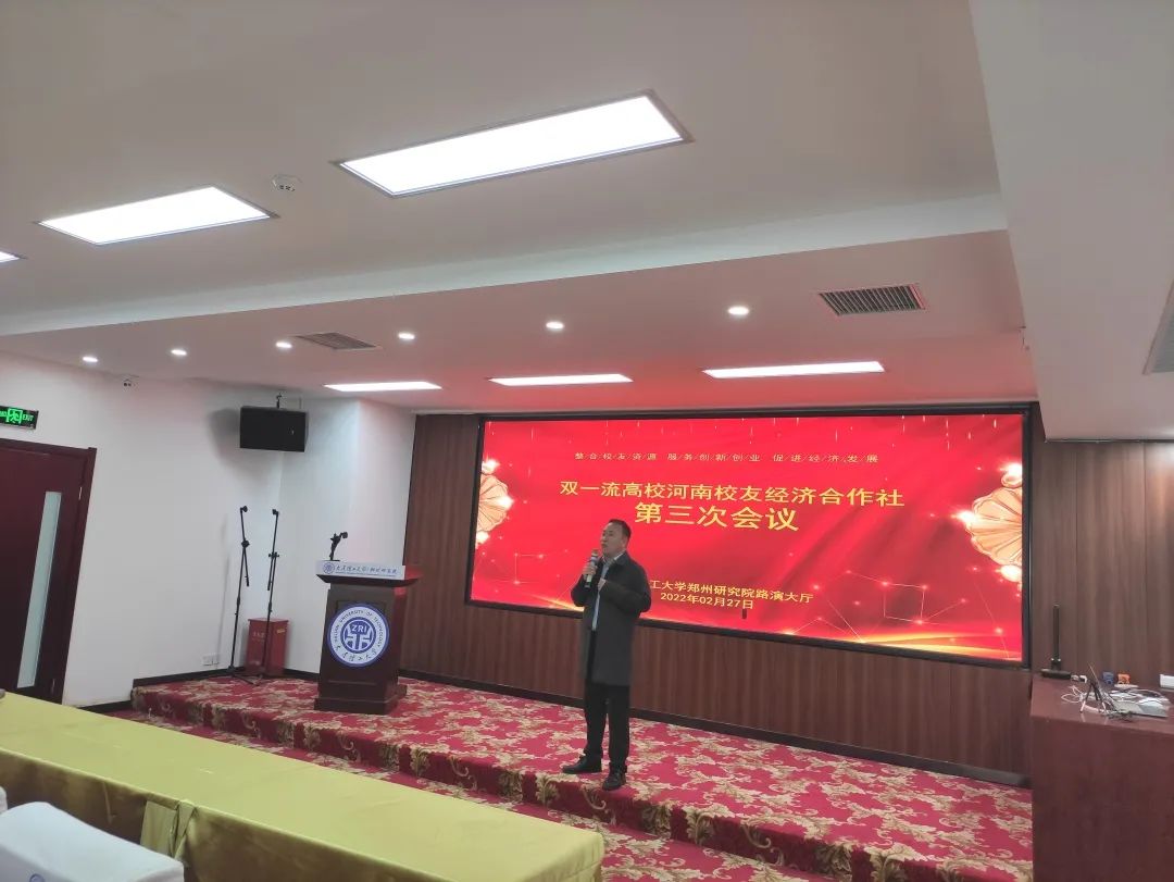 2月27日,双一流高校河南校友经济合作社第三次会议在大连理工大学郑州研究院顺利召开。与会嘉宾40余位,另有70余位嘉宾线上参与。吉林大学、中国人民大学、湖南大学、西北农林科技大学、西安交通大学、华中科技大学、重庆大学、郑州大学、天津大学、兰州大学、山东大学、哈尔滨工业大学、北京理工大学、北京师范大学,以及大连理工大学郑州研究院于坦、大连理工大学洛阳研究院院长助理刘东升等高校的代表参与会议。会议由我校2003级建筑环境与设备工程专业白振华校友主持。